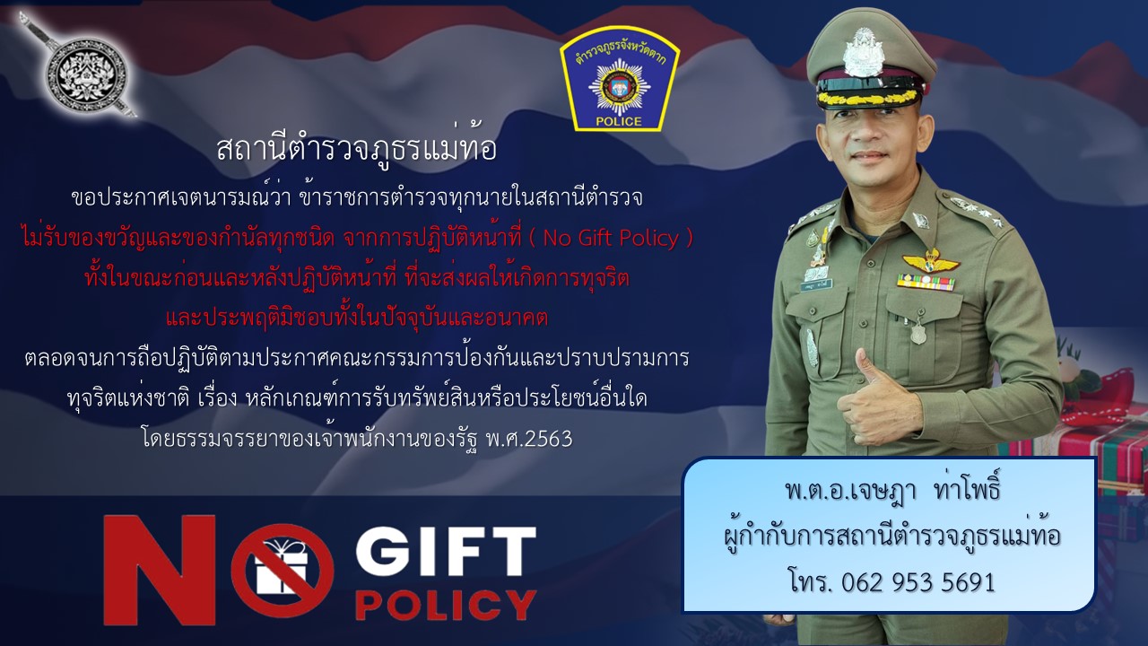 ในช่วงเทศกาลสงกรานต์ 2568 วันที่ 11 – 16 เมษายน 2568พ.ต.อ.เจษฎา ท่าโพธิ์ ผกก.สภ.แม่ท้อ พร้อมด้