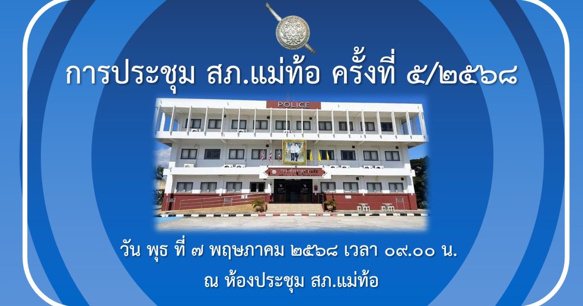 ประชุมประจำเดือน พฤษภาคม 2568 7 พฤษภาคม 2568 โดย adminMT / ข่าวภารกิจผู้บังคับบัญชา วันที่ 7 พ.ค. 68 เวลา 09.00 น. พ.ต.อ.เจษฎา ท่าโพธิ์ ผกก.สภ.แม่ท้อ พร้อมด้วยคณะผู้บริหารได้ประชุมประจำเดือน เพื่อมอบนโยบายและข้อสั่งการจาก สำนักงานตำรวจแห่งชาติ ตำรวจภูธรภาค 6 และตำรวจภูธรจังหวัดตาก เพื่อให้ข้าราชการตำรวจในสังกัด ปฏิบัติหน้าที่ตามแนวทางนโยบายของผู้บังคับบัญชา ณ ห้องประชุมชั้น 3 สภ.แม่ท้อ Facebook iconFacebookTwitter iconTwitterLINE iconLine